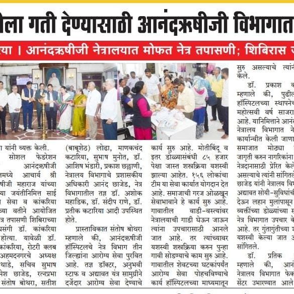 आनंदऋषीजी नेत्रालय विभागात होणार नेत्र पेढीची स्थापना