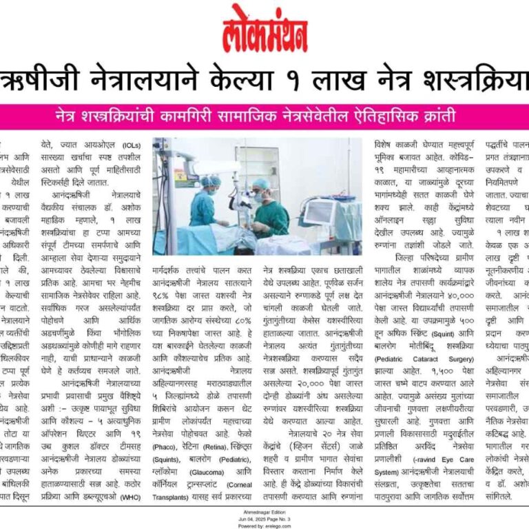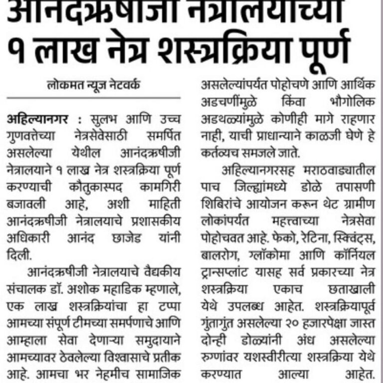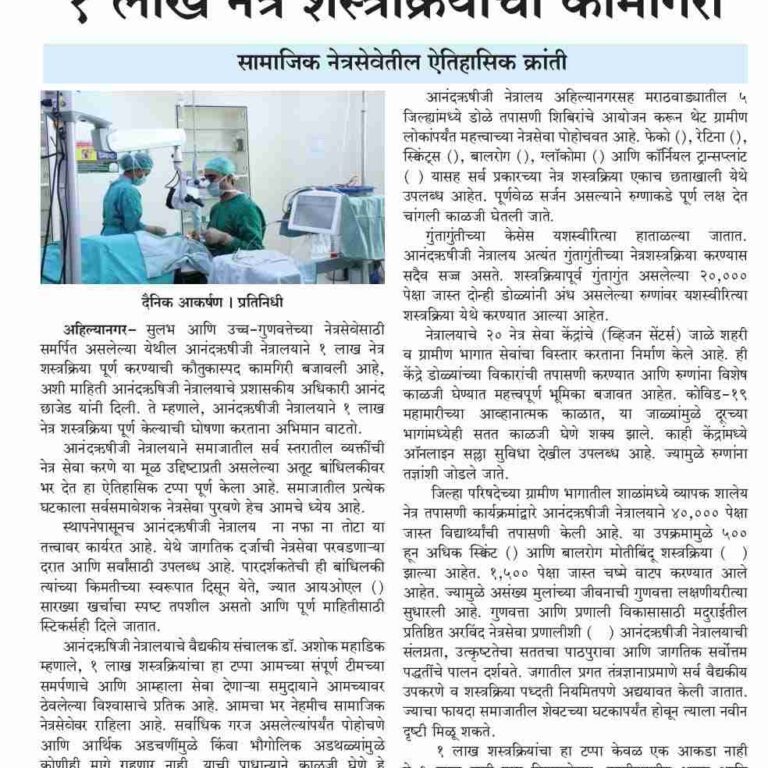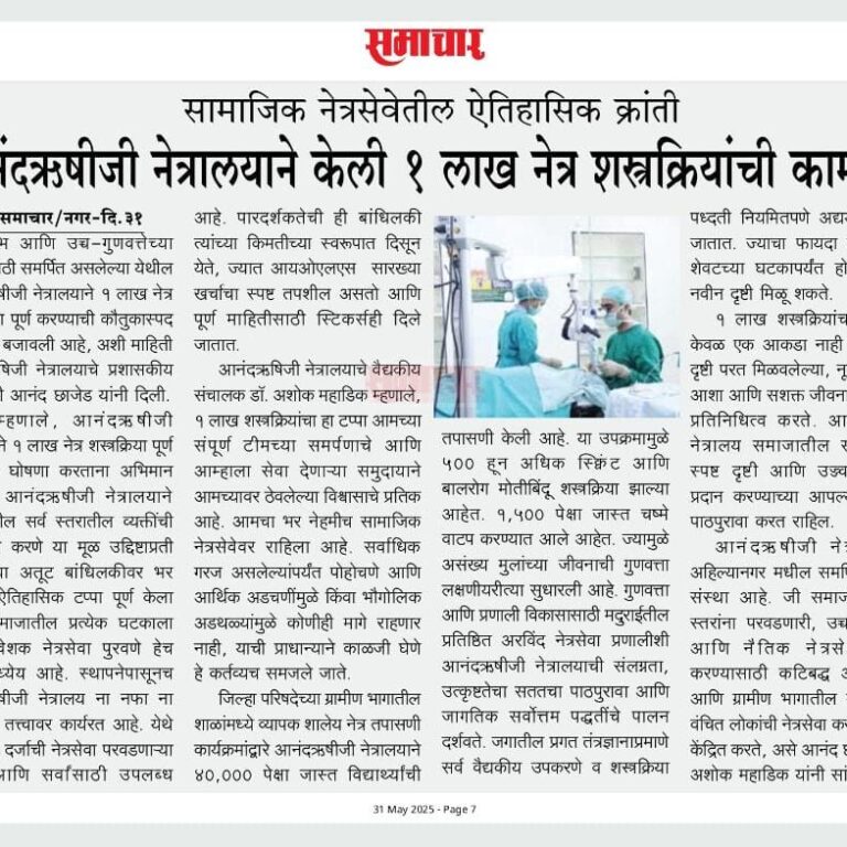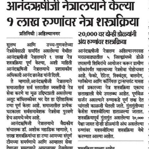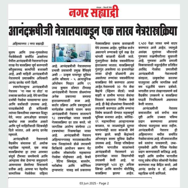 Anandrishiji Netralaya, Near Anandrishiji Hospital, Anandrishiji Marg, Ahmednagar, Maharashtra, India